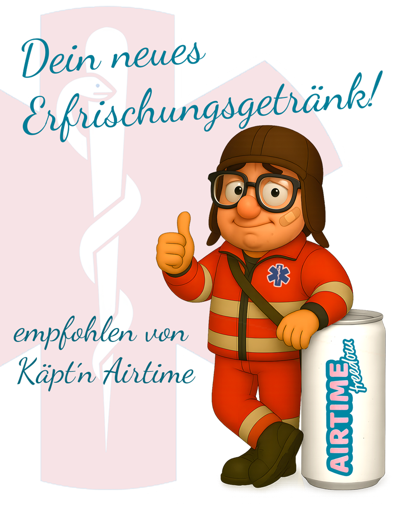 Doch Airtime erfrischt nicht nur – es hilft auch. Mit jedem Kauf unterstützt du den Rettungsdienst & Katastrophenschutz e.V. Ein Teil des Erlöses fließt direkt in wichtige Projekte, Ausrüstungen und Schulungen, die im Ernstfall Leben retten können. So wird jeder Schluck zu einem kleinen Beitrag für mehr Sicherheit und Gemeinschaft.